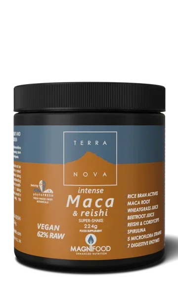 Maca is een adaptogene wortel en komt voornamelijk uit het Andesgebergte. Maca beschikt van nature over eiwitten, vitamine C en B, kalium, calcium, ijzer, koper, zink, plantensterolen en vele andere voedingsstoffen. Daarnaast bevat het Reishi wat goed is voor het immuunsysteem en het cholesterol.*